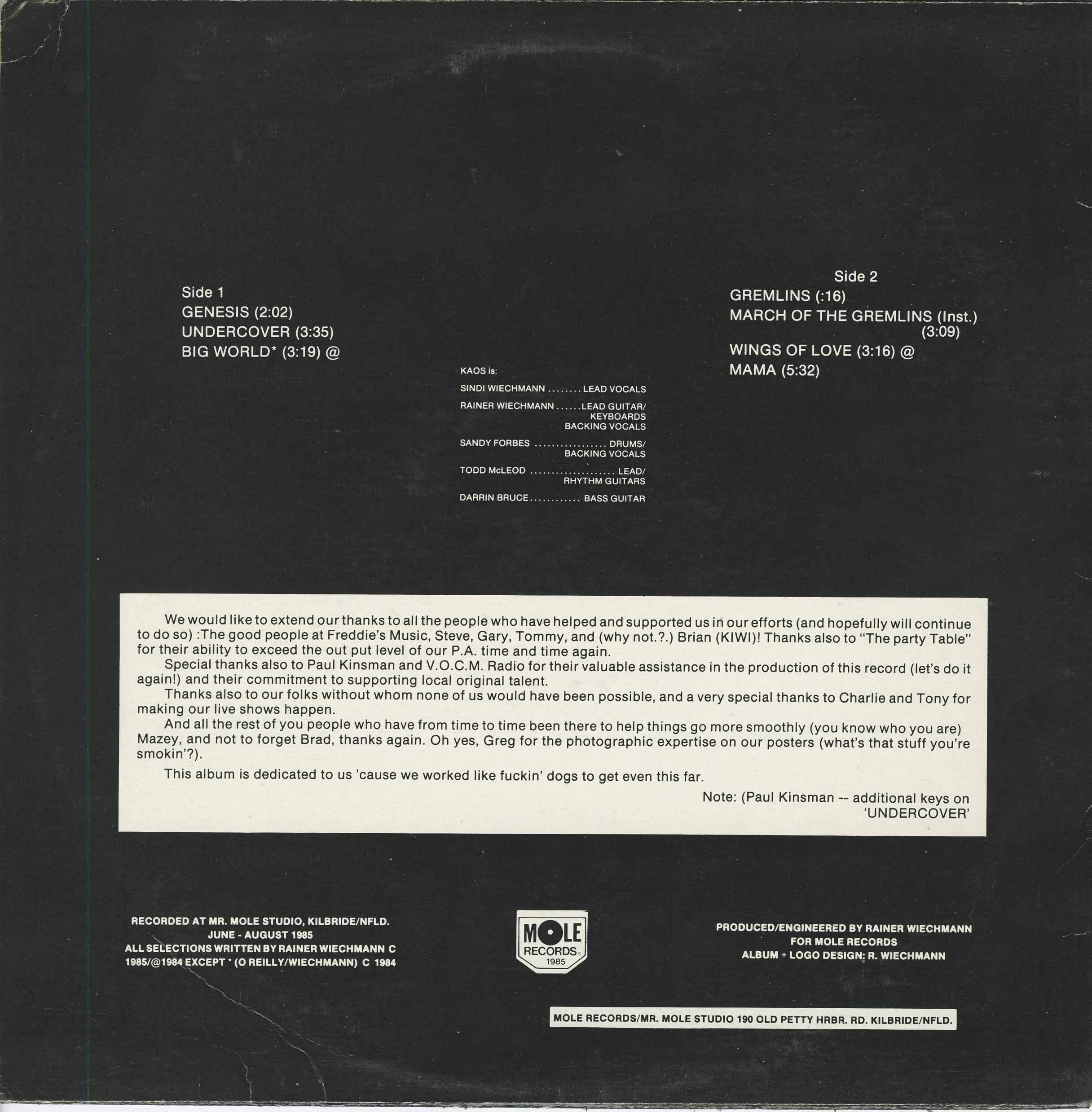 KAOS was the premier metal band back in the 80’s in NL, Canada most known for their song “March of the Gremlins”. This song was an instrumental on their debut LP TOTAL KAOS which every metal fan should try to locate. It had such a distinct guitar riff that made it easily recognizable.