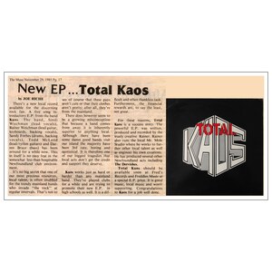 Total Kaos should be available soon at Fred’s Records and Freddies Music at a special E.P. price. It is good music, local music and worth supporting. Congratulations to Kaos for a job well done.