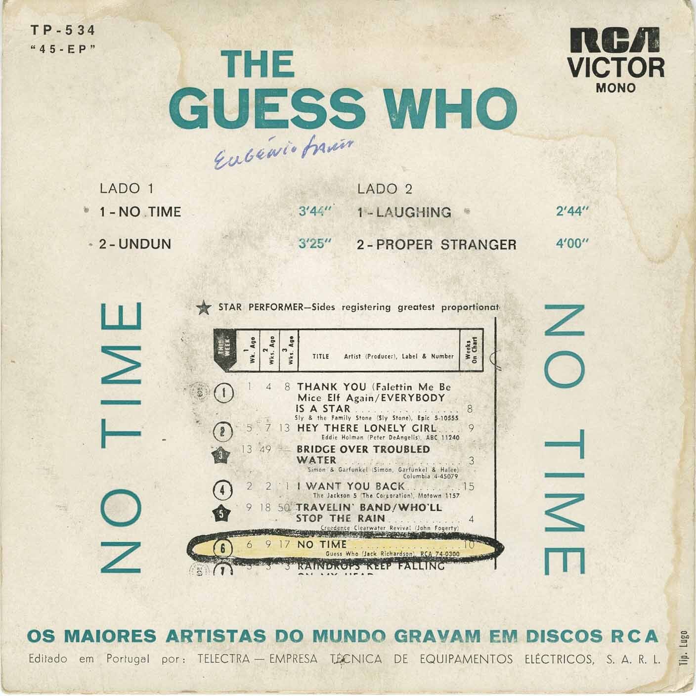 Guess Who - No Time/ Undun b/w Laughing/ Proper Stranger (picture sleeve)