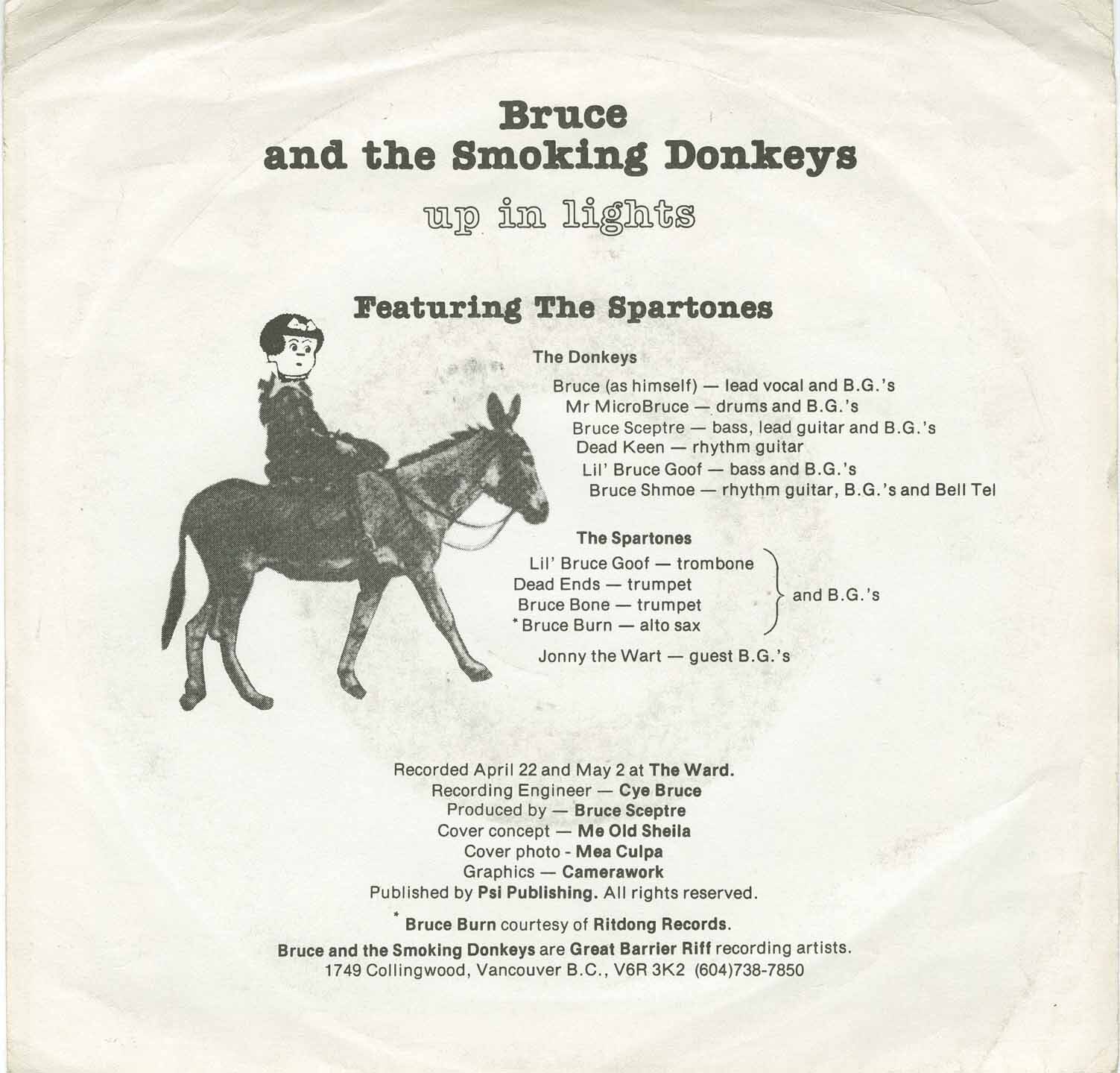 Bruce and the Smoking Donkeys - Up in Lights b/w Wake Up Little Sister (picture sleeve)