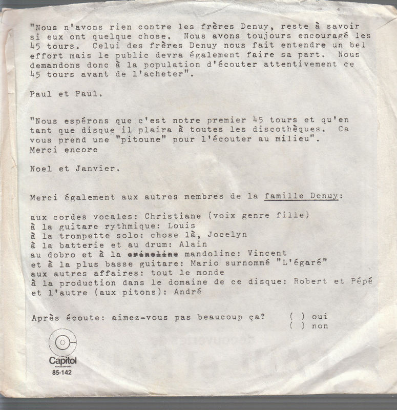 Paul et Paul - Noel et Janvier Denuy (picture sleeve)