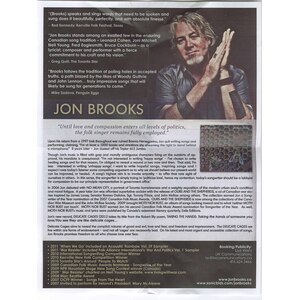 'Political' songwriting is all too often assumed to be shouty simplistic protest, and all too often it is and therefore tends to be ignored by those who should take the most notice of it. Canadian Jon Brooks knows this and his songs are songs first and messages second. The result is a powerful set that cuts to the heart of all that matters, and one that Brooks, a man with a powerful and at times brutally clear-sighted vision, has created armed only with an acoustic guitar, a harmonica, and a gritty ragged voice.
