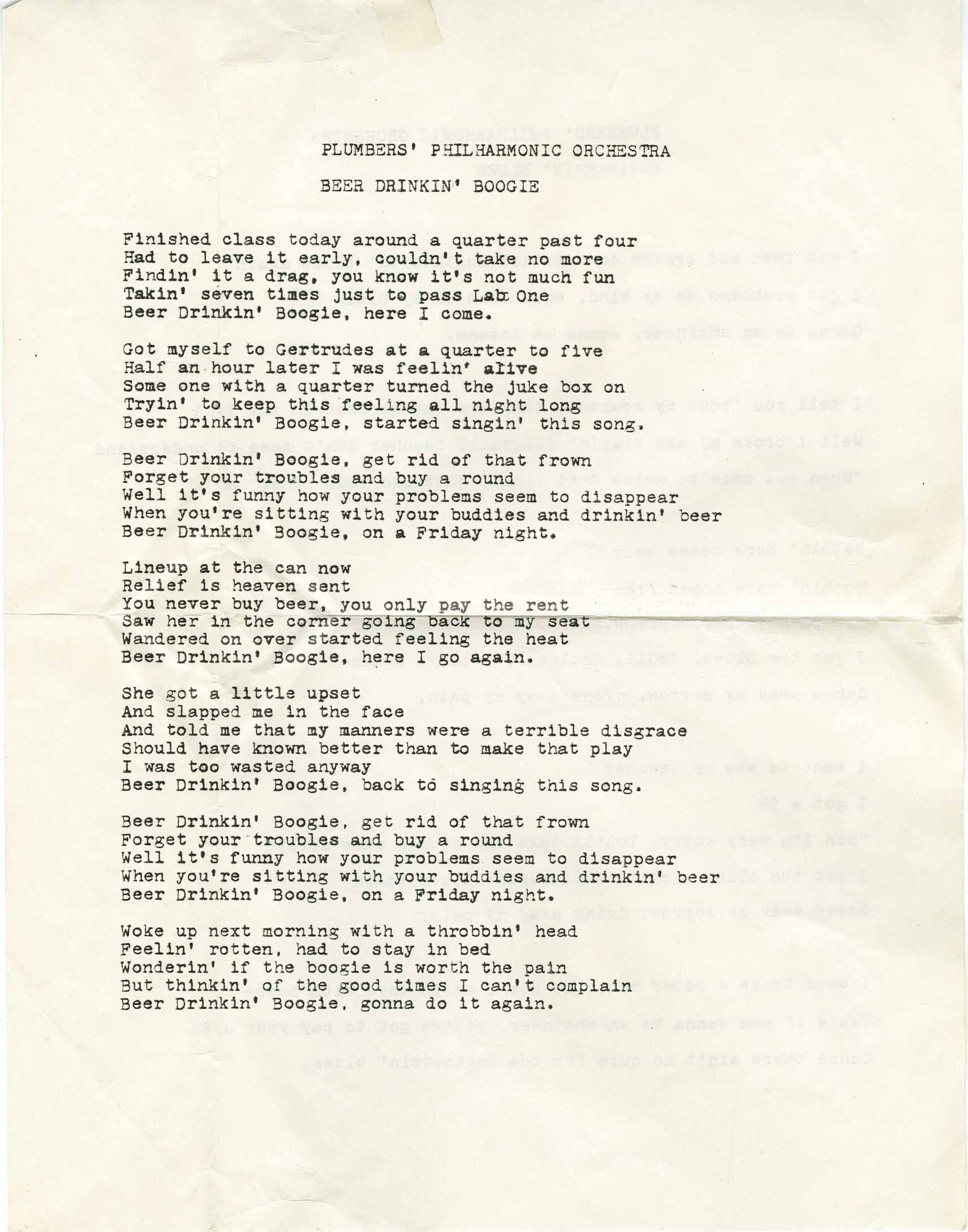 Plumber's Philharmonic Orchestra - Engineerin' Blues b/w Beer Drinkin' Boogie (with lyrics)