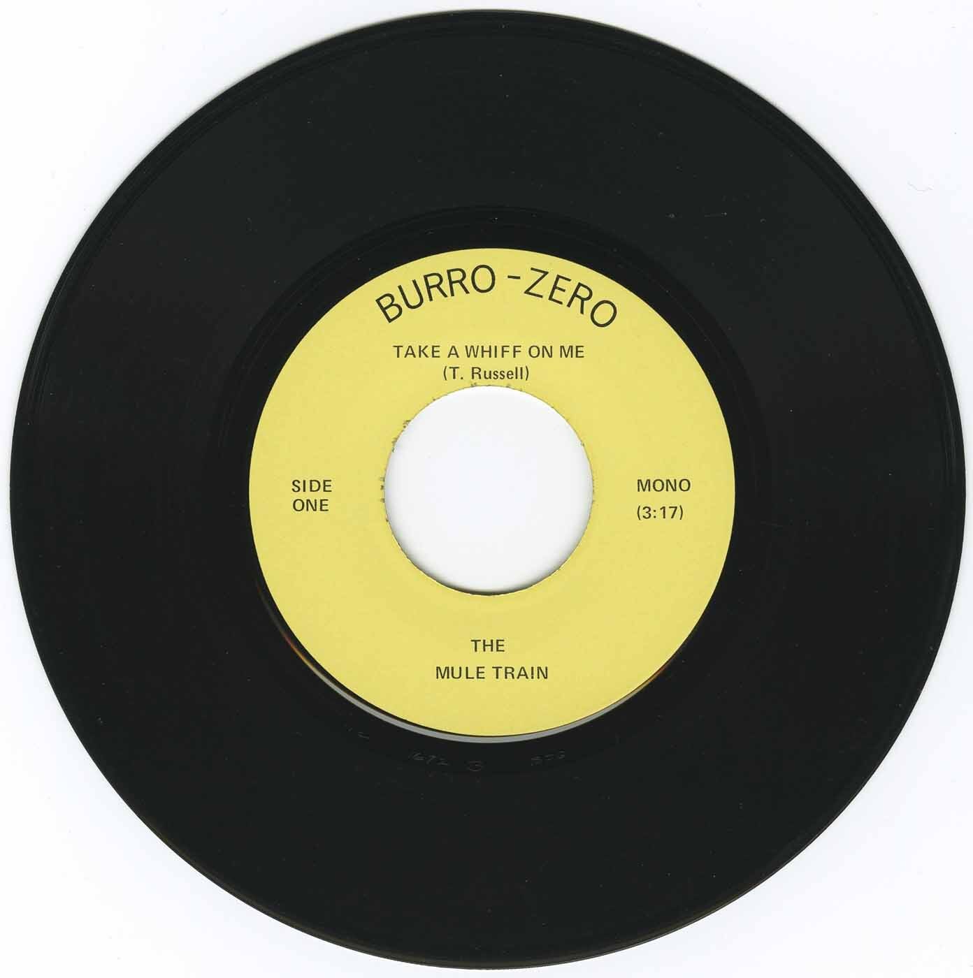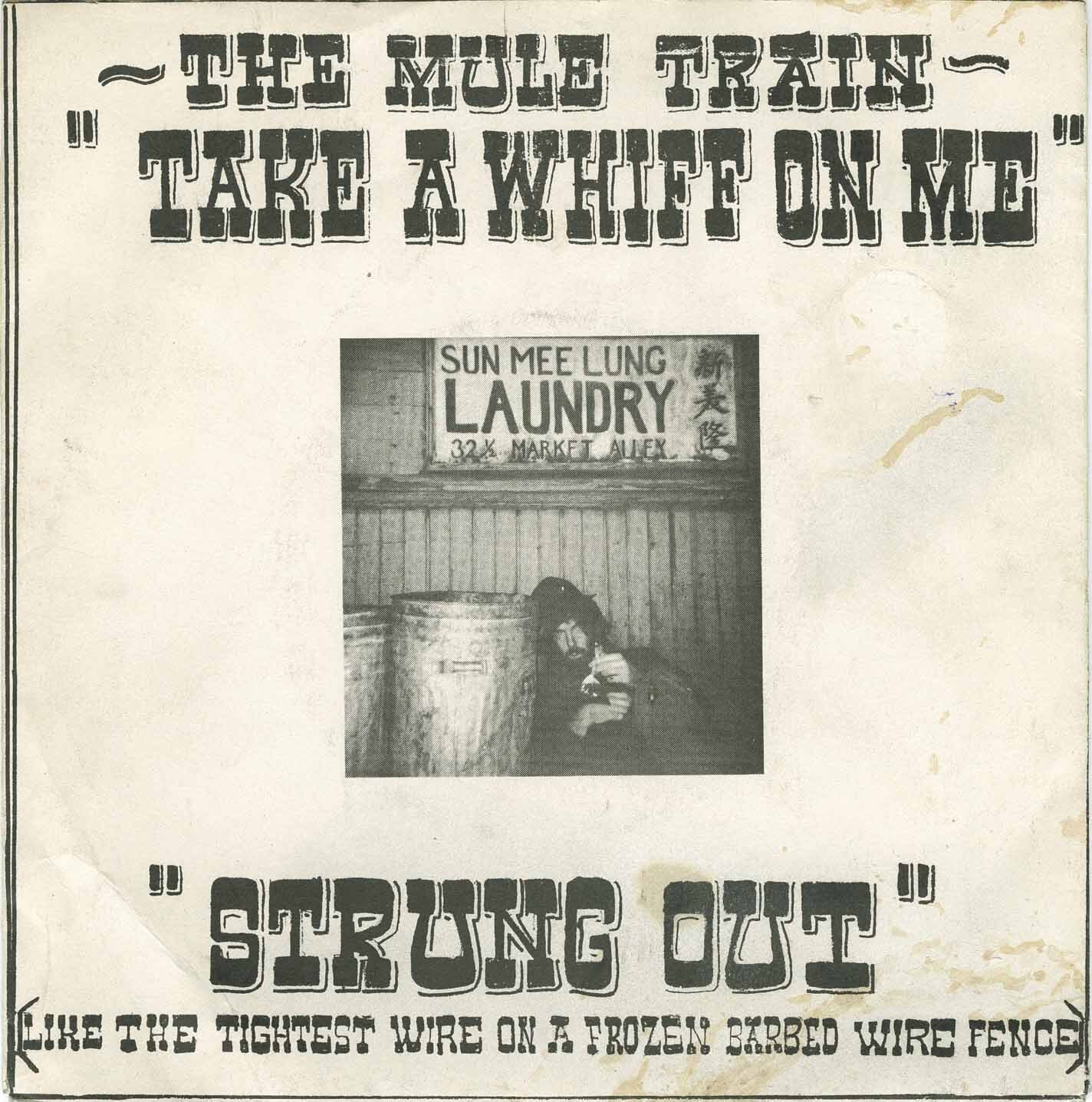 Mule Train (Tom Russell) - Take a Whiff on Me b/w Strung Out (Like The Tightest Wire On A Frozen Barbed-Wire Fence) (picture sleeve)