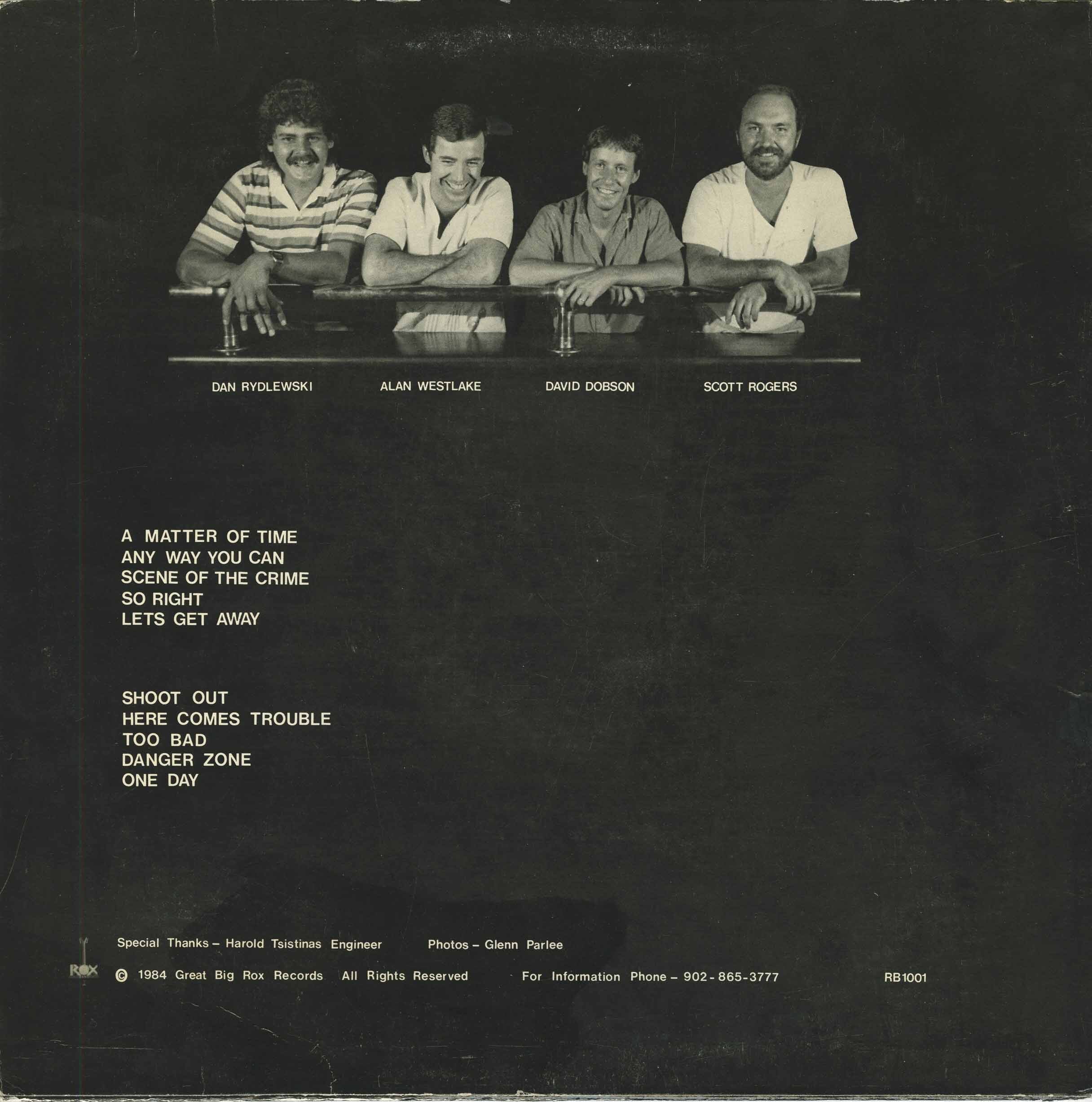 The final version of Liverpool-based Sandy Road - Dobson, Westlake and Rice - became Rox with the addition of Haligonian Scott Rogers in September 1978. The band played all over the Atlantic Provinces doing bars and one-nighters. When Rice left the band in April 1979 and joined Titan, Rox continued for a short period as a three-piece band before Dan Rydlewski joined and this version of the band recorded the album, "A Matter Of Time" in 1984. Former Molly Oliver keyboardist, Michael Leggat replaced Rydlewski. Rox played its last gig on New Year's Eve 1987.