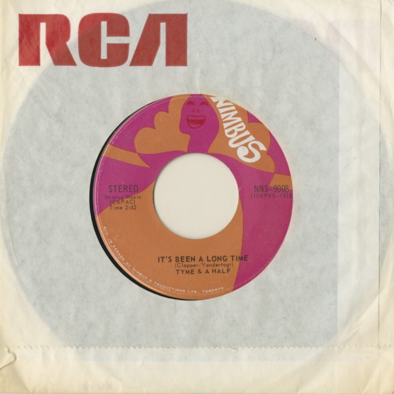 After coming to the attention of Al MacMillan at the newly formed Nimbus 9 Productions, the group adopted the more contemporary name Tyme & A Half. Under this name, they released two singles between 1968 and 1969, including ‘It’s Been a Long Time’ backed with ‘Magic Island’, followed by ‘Cassandra’ b/w ‘It’s Happening Here’. The debut single received notable regional airplay, charting as high as #20 on CFRA-AM in Ottawa.
