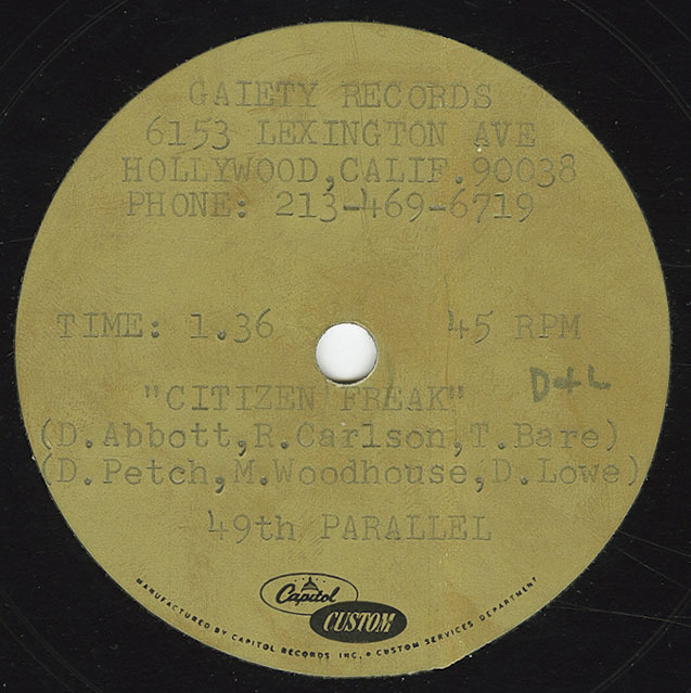 This single marks the first widely distributed release from 49th Parallel and remains one of their most memorable recordings. Although the band would later explore more psychedelic and melodic directions, She Says and Citizen Freak preserve the raw spark of their early period in Calgary, when a group of young musicians managed to carve out their place in the growing Canadian rock landscape.