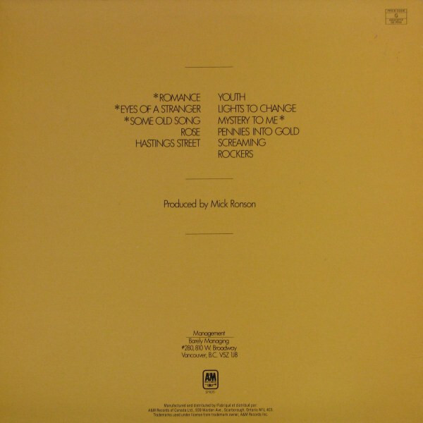 The album is only available on vinyl and cassette; it has not been released on CD or as a commercial digital download, although some tracks (notably "Romance" and "Eyes of a Stranger") appear on some compilations. The album reached #5 in Canada, and was #37 in the 1982 Year End chart. "Eyes of a Stranger" reached number 4 in Canadian charts, and was number 34 in the year-end chart.