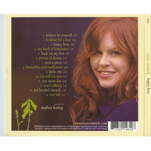 Unlike any of these, however, Suzie remains an undiscovered gem – well overdue the savoring of her just desserts. She’s worked tirelessly throughout her career to create the record that is destined to turn heads, to thrust her onto the world stage. Happy Here hereby moves Suzie from the passenger’s chair to the driver’s seat as she brings all her skills and seasoned confidence to bear on the mission ahead. Produced by Stephen Fearing, Happy Here is a masterwork and – creatively – a clearly defined mark-in- the-sand. Whether she’s cooing like Dusty through the positively sublime "Believe In Yourself " or purring alongside Paul Reddick on the hook-rich "Looking For A Kiss", Suzie declares ownership of the turf. From the drop-dead, quintessential Vinnick song – and title track, with its pedal steel and percussive rhythm, Suzie simply soars above each exotic mix. Fearing pulls out all the stops to tastefully embellish that crystalline voice to redefine her rootsy blend through use of harp, strings, horns, accordion, mandolin and guitar as required. Case in point – "My Kind of Loneliness " – as perfect a song and as blissful an arrangement as has ever come together on a Canadian recording. Vinnick’s songwriting has been acknowledged with several high profile awards over the years but her hand is clearly involved in each of the fourteen tracks found here.