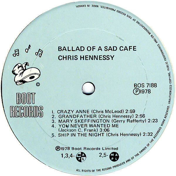 Ballad Of A Sad Café was written and recorded by Chris Hennessy of Torbay, NL in 1978