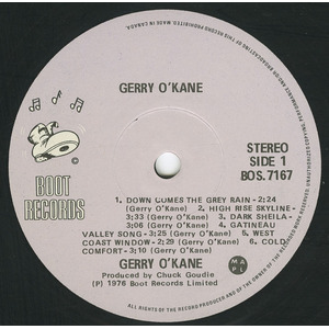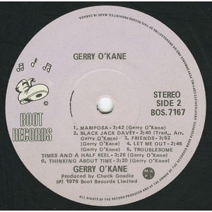 In 1976, O’Kane released his self-titled debut LP on Boot Records (BOS 7167), produced by Chuck Goudie and engineered by Peter Mann at Eastern Sound, Toronto. The album featured a seasoned studio lineup including Jimmy McGinley (guitar, mandolin), Fred McKenna (bass, fiddle), Dan Hynek (keyboards), and Marty Buziak (drums), with artwork and photography by Ethna O’Kane. A mix of original compositions and traditional material, the record balanced introspective songwriting (“Down Comes the Grey Rain,” “Gatineau Valley Song”) with Irish folk influences, most notably his arrangement of the traditional “Black Jack Davey.”