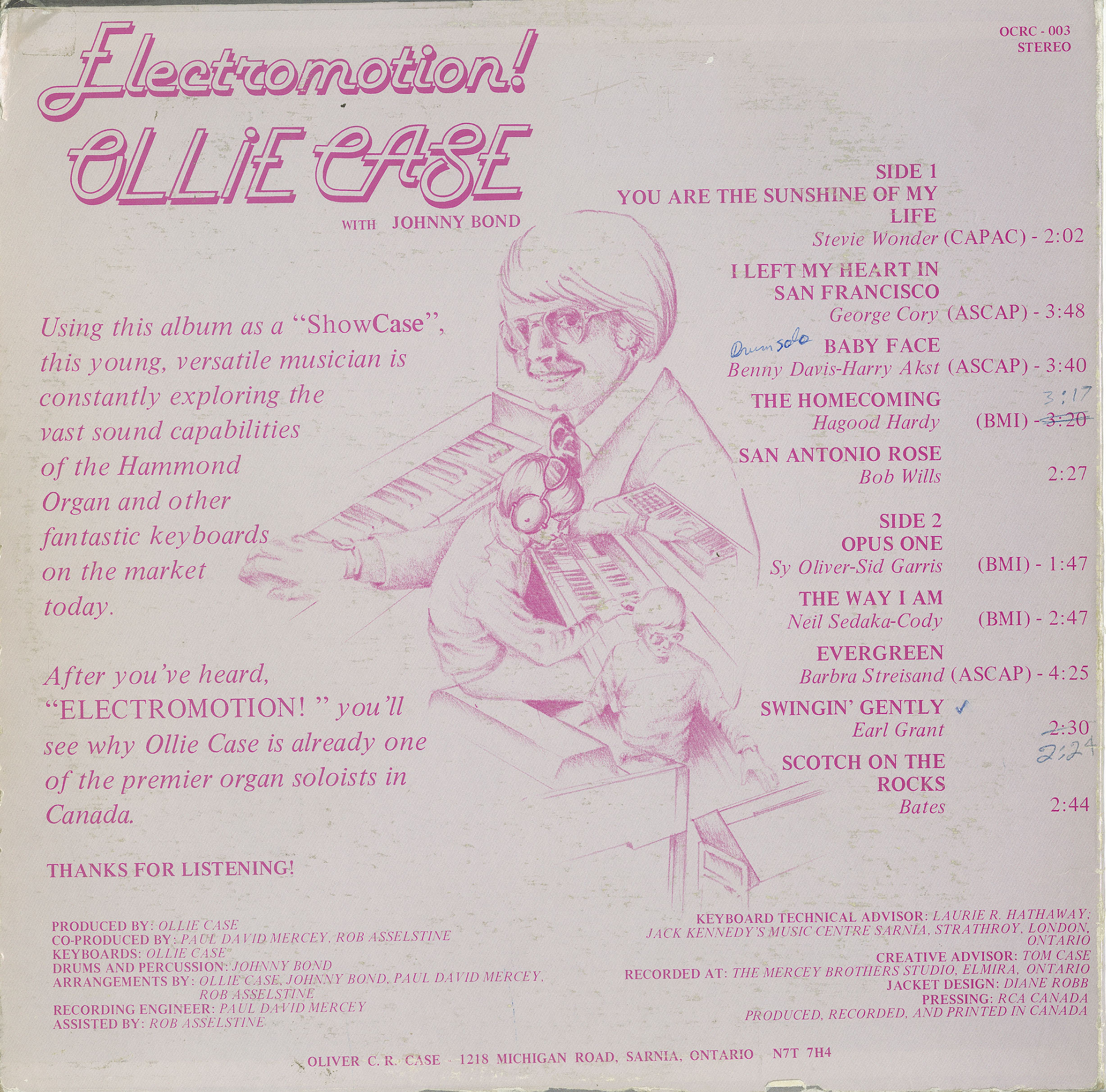 His fabulous organ technique and original style win Ollie rave reviews from audiences as he appears throughout Canada, the United States, England, Germany and Japan. This popular Canadian musician first received international attention in 1980 when he was hired as Staff Organist/Product Specialist by the original Hammond Organ Company, headquartered on Diversey Avenue in Chicago, Illinois. Prior to the Hammond appointment, Ollie was the recipient of several honors and awards including first prize out of 211 original entries in the All Ontario Amateur Talent Contest, as well as first runner-up awards in the Canadian Finals of the Yamaha International Organ Festival. Ollie has also played promotional concerts for Technics Musical Instruments, Hammond Keyboards Canada, Farfisa, Hammond Suzuki USA and Kawai America.