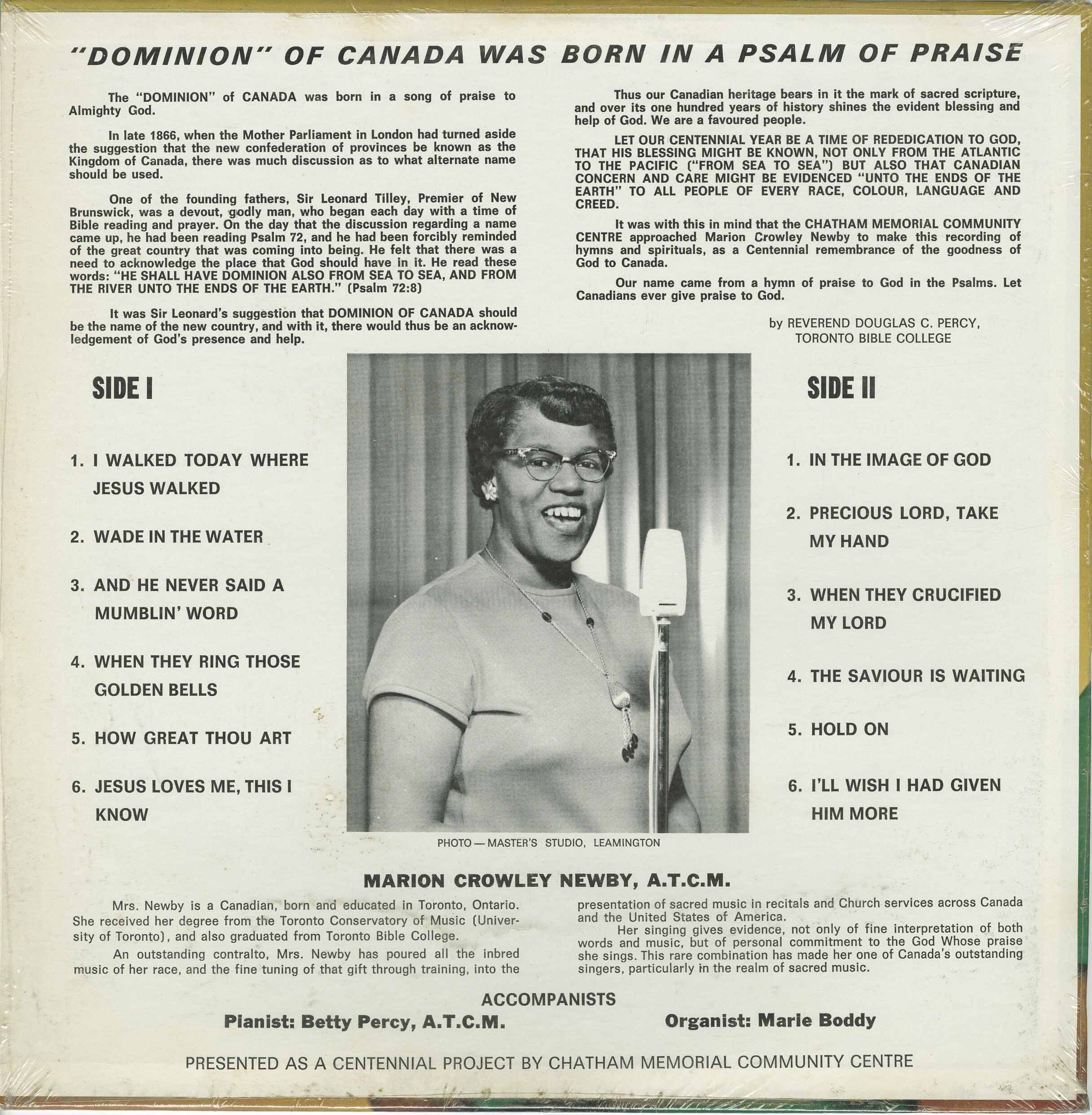 Crowley Newby, Marion - Hymns and Spirituals for Canada's Centennial