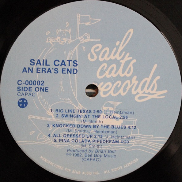 The band’s first album, An Era’s End (1982), was released independently on Sail Cats Records. Stylistically rooted in honky-tonk, country rock, and country blues, the album reflects an early phase in the group’s development that differs markedly from their later work. Recorded while Sailcats were still consolidating their sound and personnel, the album was produced by Brian Bell and pressed by Cinram. The record stands as a snapshot of the band prior to their shift toward a more contemporary pop-rock direction.