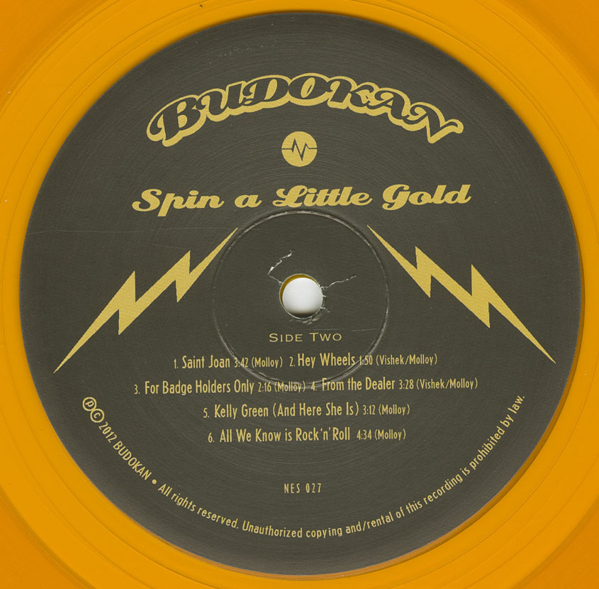 After intermittent recording activity through the late 2000s, Budokan reconvened to complete their debut full-length album, Spin a Little Gold, released in 2012 on Northern Electric Records. Issued on 180-gram gold vinyl, the album marked the band’s most fully realized statement, consolidating years of songwriting into a cohesive collection of power-pop and rock material. The album was later released on compact disc in Japan via SP Records, extending Budokan’s reach beyond Canada.