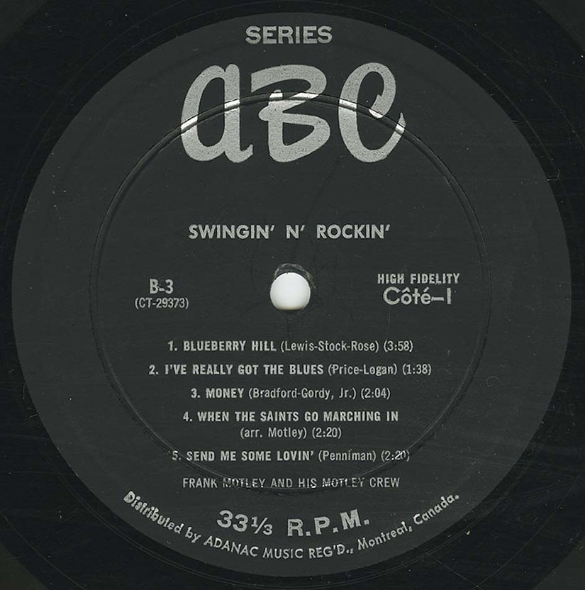 Motley’s first Canadian release came in 1956 on the Quality label: the scorching R&B 78 “Rock and Roll Gotta Beat” b/w “New Hound Dog”, issued as Frank 'Dual Trumpet' Motley and His Crew. A powerful mix of jump-blues and early rock, it marked one of the earliest Canadian R&B recordings and placed Motley at the leading edge of the country’s nascent Black music scene.