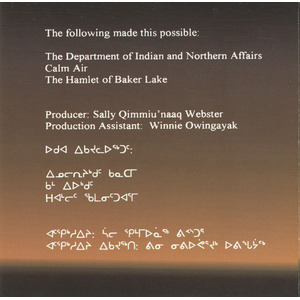 “I am so grateful to you for making these recordings from Baker Lake available. These songs, because of you, are now going to become part of the children's education. Their language and culture is vital to their identity, and there is so much erosion of it from competing distractions. Most of the children speak English and don't know Inuktitut. These songs will connect the younger generations, and future generations, to their roots. These songs will reconnect the younger generations to their culture and their language. Thank you for making that possible. There are still some Elders in Baker Lake who lived a traditional, nomadic life before moving to Baker Lake.”