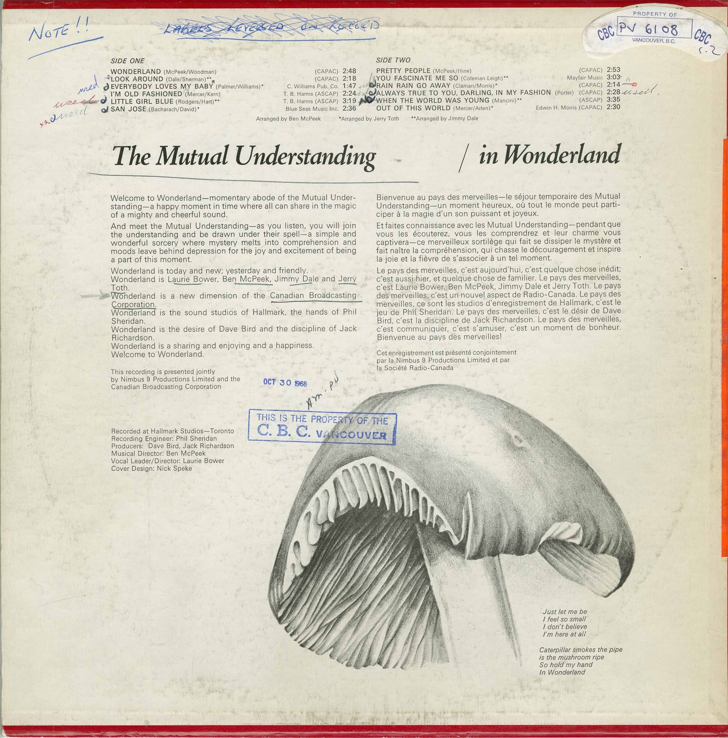 The Mutual Understanding also recorded Christmas with Rick Wilkins and the Mutual Understanding in 1970 on CBC Radio Canada as well as two rare 45’s: “Wonderland b/w Pretty People” on Nimbus 9 and the non-LP 7”: “Show Me Your Laughter b/w Summer of '42” on CBC Radio Canada.