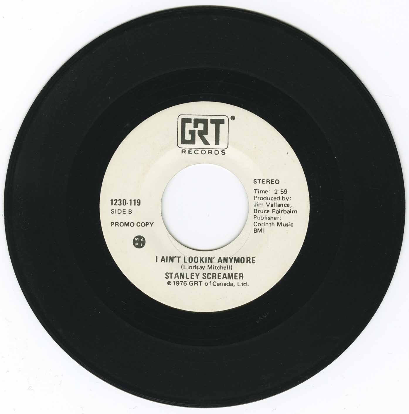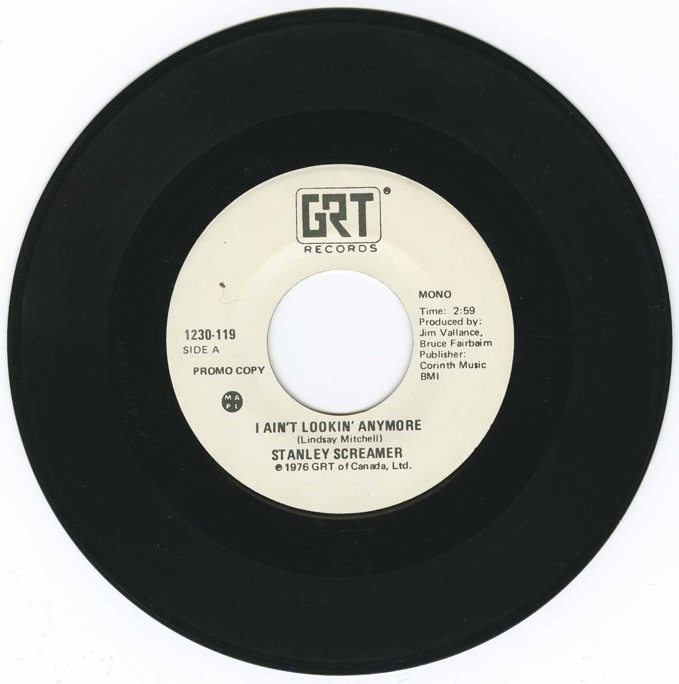 Stanley Screamer - I Ain't Lookin' Anymore (mono) b/w I Ain't Lookin' Anymore (stereo) (promo)