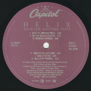 All songs written by Helix Music (Brian Vollmer and Paul Hackman) (tracks A1 to B2, B5, B6); and Marc Ribler (tracks B3, B4)