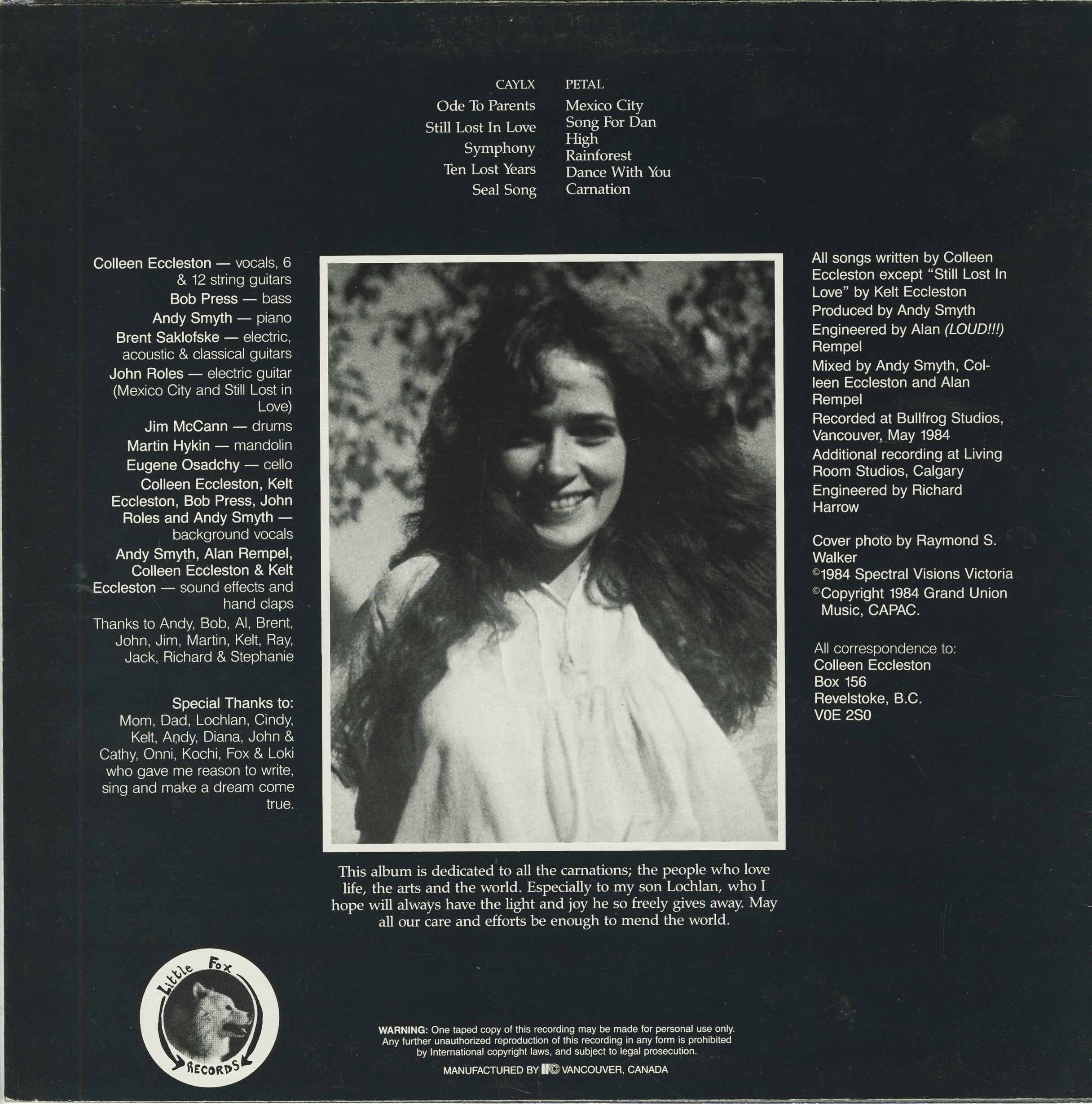 I remember when an album was the dream. This was recorded at BullFrog Studios in Vancouver BC May 1984. Bob Press on bass, Andy Smyth on piano, Brent Saklofske on electric and classical guitar, John Roles, electric on Mexico City, Still Lost in Love. Jim McCann on drums, Martin Hykin on mandolin, Eugene Osadschy cello, Kelt Eccleston, Bob Press, Andy Smyth, John Roles background vocals