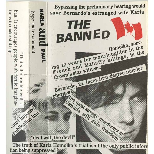 The tape is produced by St. Catharines-based Deer Park Productions (905-682-5107). Producer John Spenser and the band were very visible at the opening salvo of Bernardo's trial, flogging the tape at $4 a pop. The group considered singing the songs outside the courthouse but decided this would be in "bad taste." The tape is available on consignment in various shops in Toronto, like Vortex on Queen W.