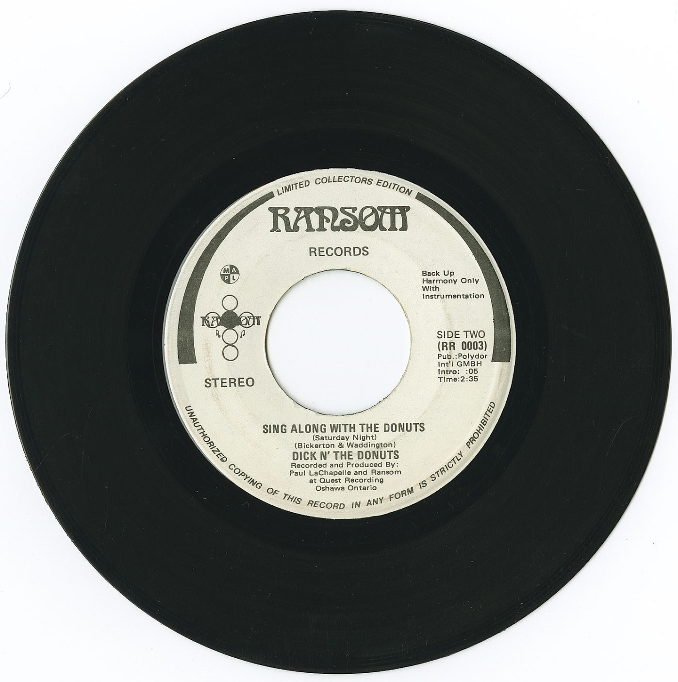 Recorded and produced by Paul LaChapelle and Ransom at Quest Recording, Oshawa, Ontario