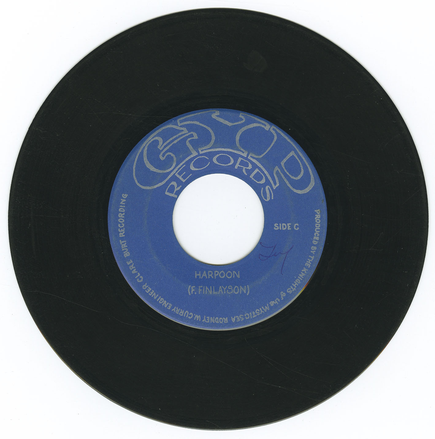Their lone single, Pretty Woman and Ugly Men b/w Harpoon, was pressed privately on Gyp Records in an edition of just 100 copies, handed out at gigs and quickly vanishing into collector folklore. The A-side (labeled “Side B”) is a swaggering Davis original, showcasing his wry lyricism and snarling guitar tone. The B-side (“Side C”) gives Fraser Finlayson room to shine, unleashing sharp harp leads over a deep shuffle groove.