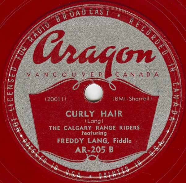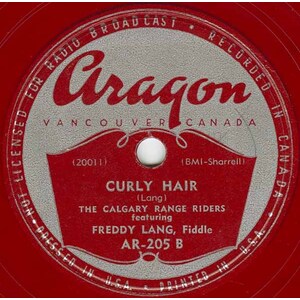 Here's a scarce one from Buddy Reynolds with the Calgary Range Riders. Rocky Mountain Rhythm has to be one of Buddy's liveliest tracks with Buddy singing that Rocky Mountain Rhythm, gets right in your hair, Rocky Mountain Rhythm everywhere while the Calgary Range Riders get you in a foot-stompin, square-dancin' mood. Freddy Lang contributes a fine fiddle tune on the B side. Note that 'Curly Hair' was included in a recent Canadian fiddle-accordion compilation CD/Book out of Newfoundland.