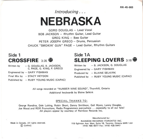 Nebraska - Sleeping Lovers b/w Crossfire