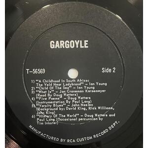 Radio Varsity was in that FM groove. It was our station culture that attracted the artists of Gargoyle. The station facility had an open area, a manager's office and three broadcast studios. The studios had egg cartons stapled to the ceilings and walls. Nothing digital in those days. Tape recorders, analog.