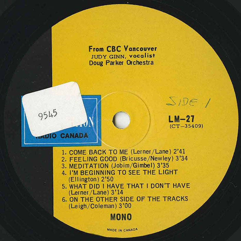 Jazz, CBC Radio Canada LM Series, 1960's, Canadian Women in Song, British Columbia, The Vancouver Jazz Scene