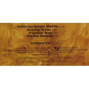 Despite the strong predominance of the organ, there is a guitar in the group. Vocals are completely in English. Often, organ losses are replaced by piano. The first side includes 4 tracks from 4 to 6 minutes in duration. The second is entirely devoted to one single Cracked Ice - 23:35.