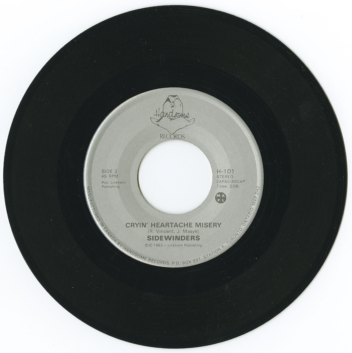 In 1983, the Sidewinders recorded a batch of studio tracks engineered by Rich Dodson at Marigold Studios in Toronto. Two of those recordings became their defining single: “Put the Blame on Me” b/w “Cryin’ Heartache Misery” (Handsome Records H-101). The A-side, in particular, introduced what would become Ned’s signature writing style—direct, emotionally clear three-chord country poetry delivered with a towering voice and downtown urgency. The single remains one of the earliest and most important recorded documents of the Queen Street country movement that would follow.