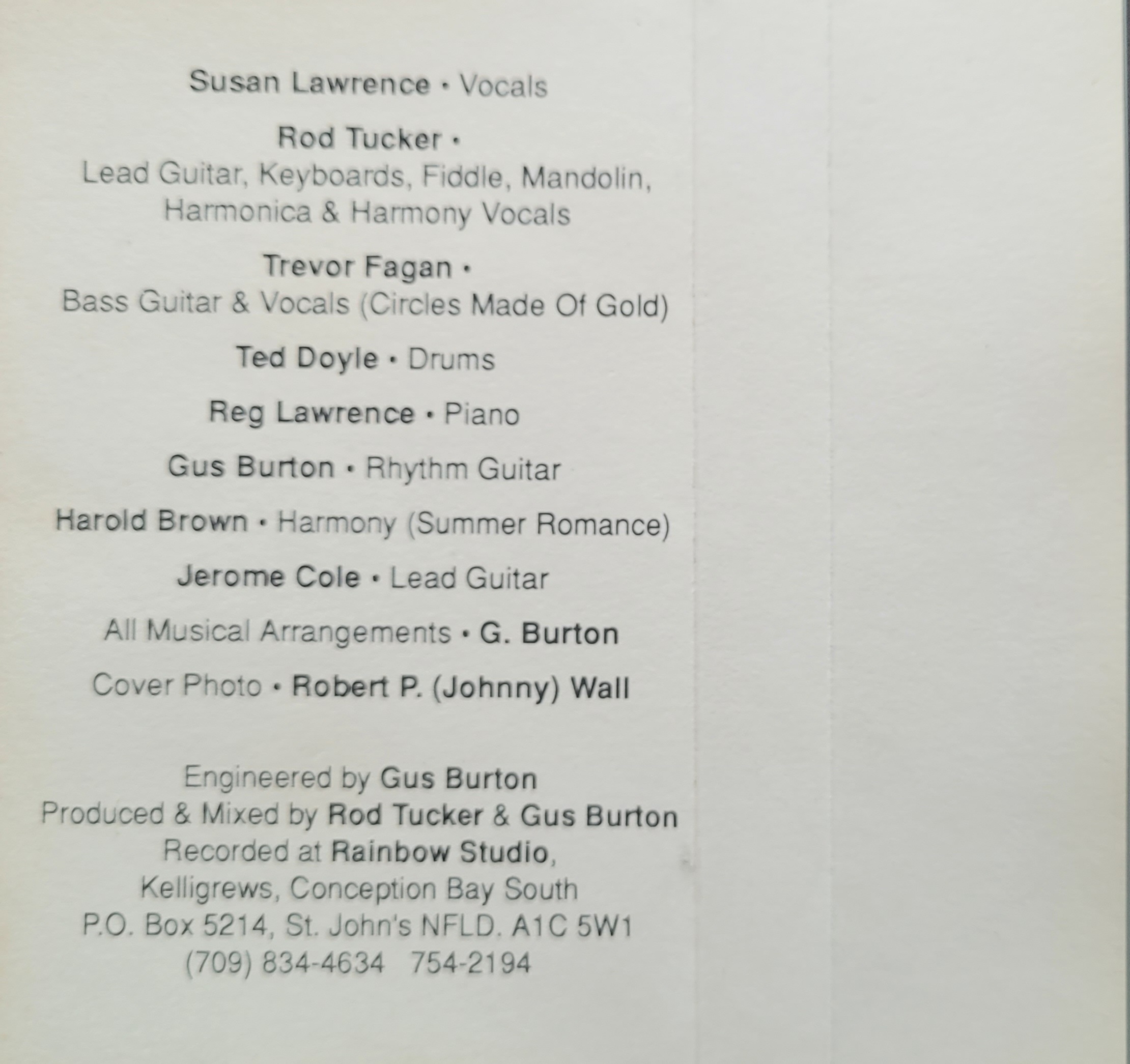 Recorded at Rainbow Recording Studio, Kelligrews, Conception Bay South, Newfoundland