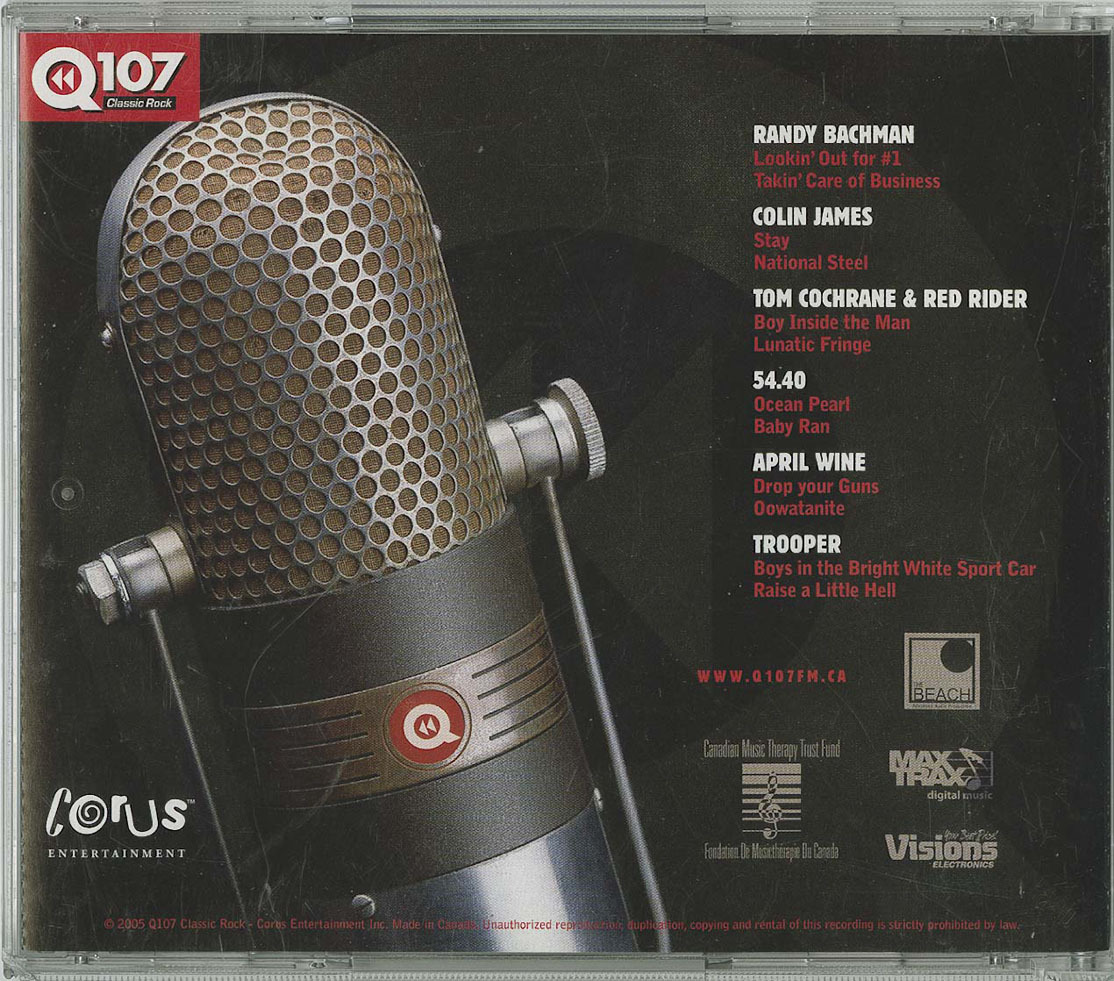 Suzanne Little, John Conrad & everyone at Ranbach Music; Todd Jordan from Paquin Entertainment Agency; Paul Mercs, Yasmine Klein, Vesna & everyone at Paul Mercs Concerts; Rob Pattee, Alex Grigg, Jen Boucher, Jane Samis & everyone at S.L. Feldman & Associates; Derrick Ross & everyone from EMI Music Canada; Allen Moy & everyone at Divine Industries Inc.; Lorraine Webb, Ralph James & everyone from The Agency Group; Mike Ellis from Eclipse Entertainment Group; Kathy Cochrane; The Gang at Visions Electronics Calgary locations for donating their rack space; Jennifer Buchanan, Fran Herman & everyone from The Canadian Music Therapy Trust Fund; Lanny Williamson, Todd J. Al, Rena Kozak, Tom Martin and everyone at The Beach Advanced Audio Production; Charles Hope & everyone at Hope Photography; Darrell Reaume & everyone at DMR Imaging; Dwane Fillmore & everyone at Western Star Promotions; Lisa Lyons, Tina Giontsis, Hans Beckers, Rob Shannon and everyone from Maxtrax Digital Music; Brandan Frieson from Studio 11; Blair McEwen, Marlin Jones and everyone from FM Systems; Zenon West, Bruce Kenyon, “Young” Stephen Murray, Garth Ross, Steve Goon, Gary Freeman, Patrick White, Wade Wensink, Ralph Eldridge; Stephanie Hansen, Adam Thormaa, Jessica Powless, Pam Hunter, Glyn Jones, Nicole Caron, Michele Caron and the entire staff at Q107 and most of all the artists who donated their time and efforts to make this project happen.