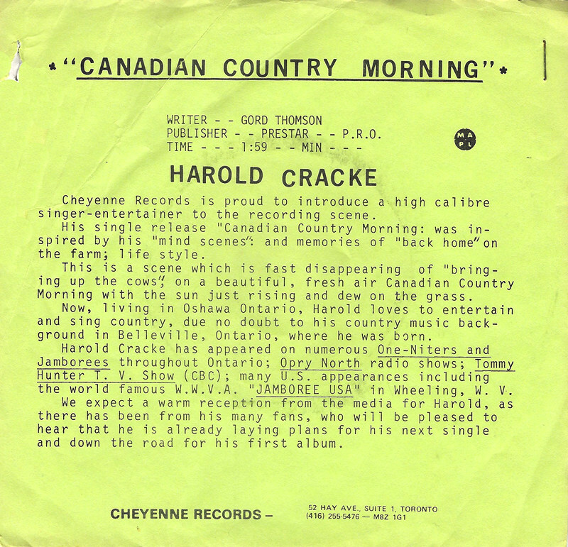 45-Harold Cracke-Canadian Country Morning SIDE 02