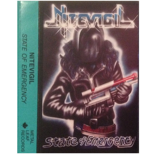 The end of 1987 saw the first big release for Nitevigil, a four song E.P. titled State Of Emergency. Recorded at the famed Mushroom Studios in Vancouver, it was released on their own label Metal Leaf Records and was only available on cassette. Through tireless self promotion and without the help of the internet, the E.P. reached underground radio stations, magazines, and newspapers where it was received with great reviews worldwide.