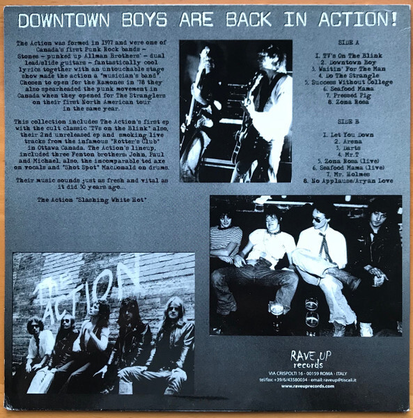 Their style combined early American and English punk like The Ramones, The Sex Pistols, and The Vibrators with rock influences such as The Rolling Stones’ guitar attack and The Allman Brothers’ dual-guitar and slide-guitar leads, which, combined with provocative lyrics and an untouchable stage show, made The Action a musician’s band. The Action was chosen to open for The Ramones in 1978 and helped spearhead punk across Canada when they supported The Stranglers on that band’s first North American tour the same year. This collection covers The Action’s short but wild career from 1977-’78: their debut 12-inch (which includes the cult classic “TV’s on the Blink”) and a recording for a never-released follow-up EP, plus smokin’ live tracks recorded at the infamous Rotters Club in Ottawa, Canada.
