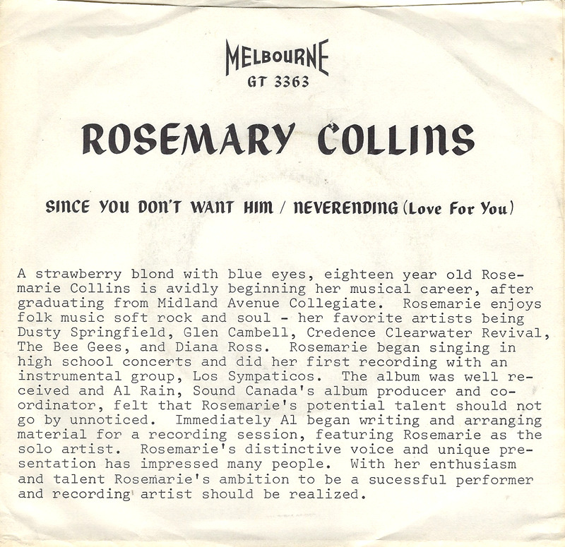 Collins, Rosemary - Since You Don't Want Him b/w Neverending (Love For You) (picture sleeve)
