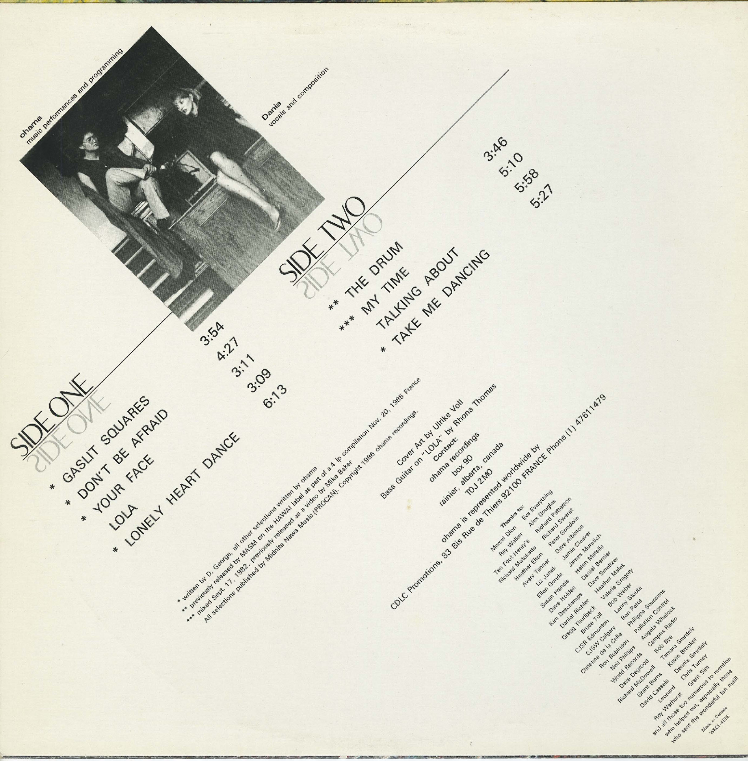 The five Dania-fronted tracks on Side A (“Gaslit Squares,” “Don’t Be Afraid,” “Your Face,” “Lola,” and “Lonely Heart Dance”) form the emotional core of the project, combining simple melodic lines with Ohama’s warm synth beds, drum programming, and sparse bass contributions (including Rhona Thomas on “Lola”). Side B shifts toward Ohama’s own writing, tying the collaboration back to the broader arc of his 1980s work.
