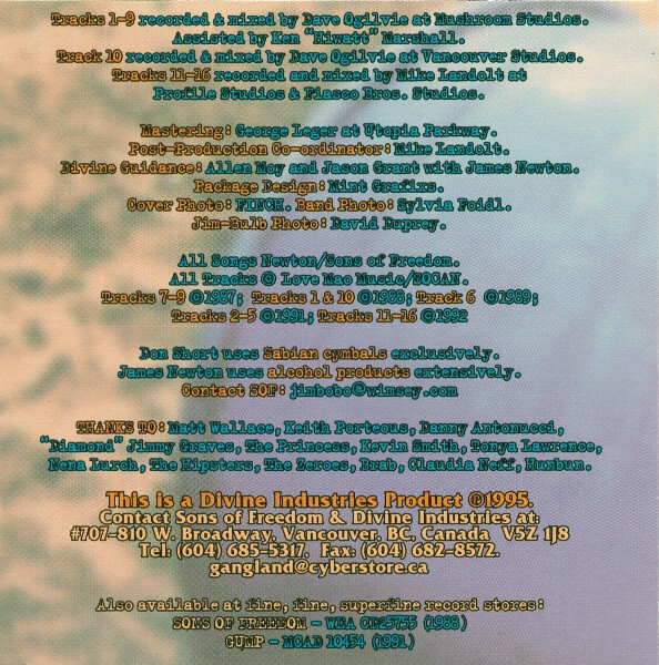 Sons of Freedom emerged from Vancouver’s underground in 1987 like a steel girder dropped onto a polite party — loud, strange, unbending and absolutely certain of their own momentum. In a city then defined by hardcore punk hangovers and jangly college pop, the quartet carved out a darker, heavier identity, merging art-damaged post-punk minimalism with industrial grind and a rhythmic sensibility that felt more like factory machinery than rock music. Fronted by vocalist and guitarist Jim Newton — a mercurial presence who reinvented his stage name from album to album — and powered by the improbable unity of three rhythm-section lifers all named Don (bassist Don Binns, guitarist Don Harrison, drummer Don Short), Sons of Freedom sounded like no one else in Canada, or anywhere else.