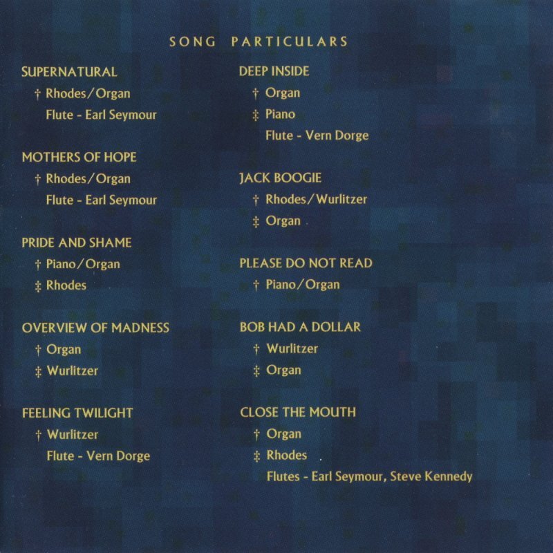 Doug Riley: Hammond B3; Fender Rhodes; Wurlitzer; piano