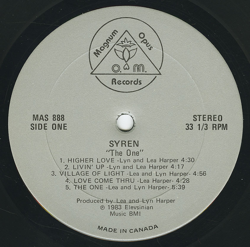 'The One' was recorded in Jamaica at Jimmy Cliffs Music Mountain Studios and The Grange in Toronto with a host of all star musicians from the Peter Tosh band, as well as an appearance by Reggae great, Leroy Sibbles, the innovative guitarist Tony Cambell (One Love) and Rod Ramsey on harmonica and the late Marty Kolesnyk on piano. The recording received critical acclaim which led to television appearances on Much Music, City TV, Breakfast Television and the Music Circle CTV, garnishing a Juno nomination for the sisters in Syren, Best Reggae performance and Best Vocal performance as well as winning Best Reggae Duo and Best Video for Higher Love at the Toronto BMAC awards in 1985. They were also nominated for a CASBY AWARD for Most promising new vocalist of the year (Lyn and lea) in Syren in 1985.