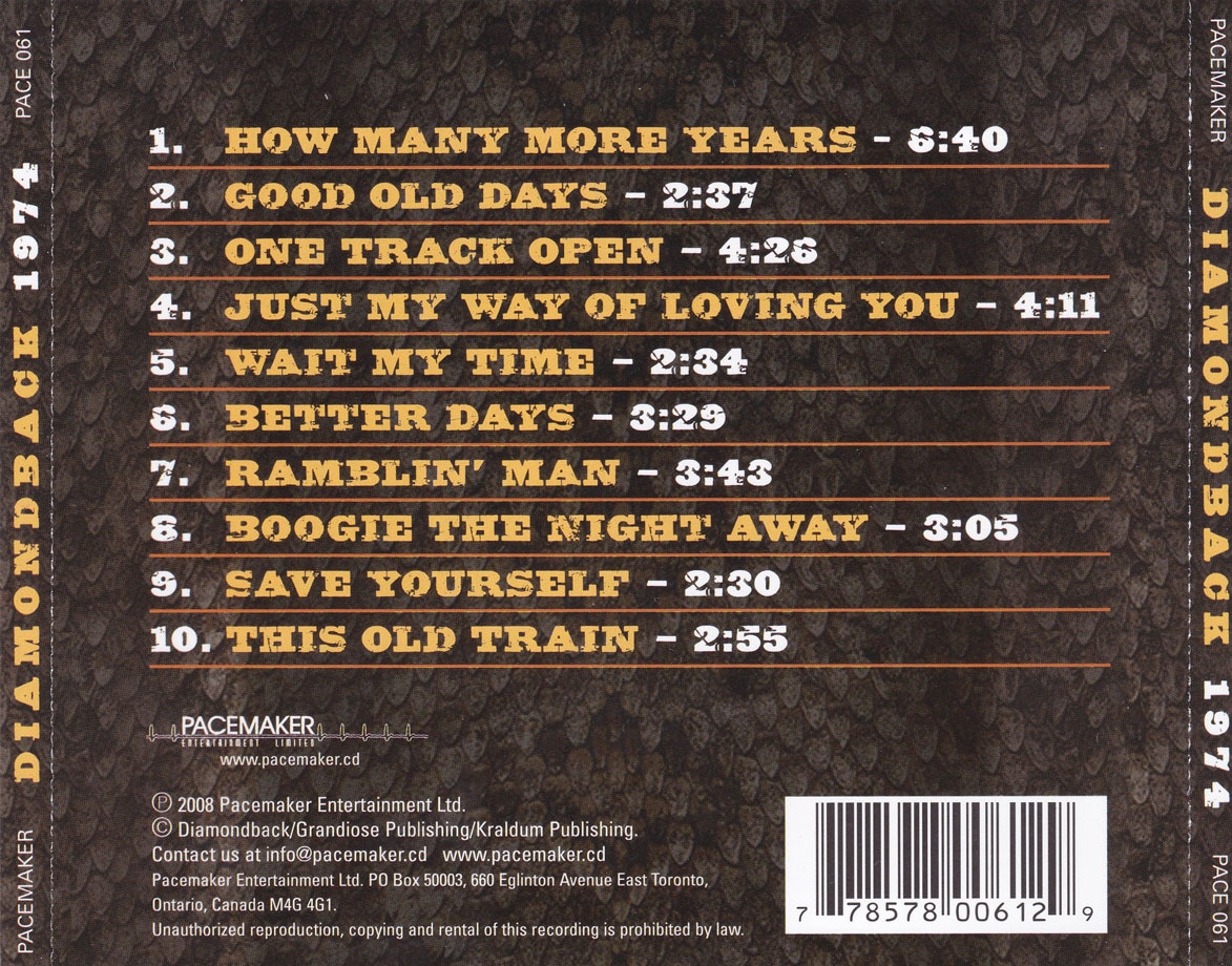 The name of the band is DIAMONDBACK (formerly Mudlark). The music is a solid combination of rock, R&B, a touch of country with a backbone of blues. Diamondback recorded an album for Atlantic Records, but Atlantic only released two singles before scrapping the full LP. Pacemaker Entertainment salvaged the record and issued it in 2008. Scott Cushnie died in August, 2018 and was buried by the wrong family in a bizarre case of mistaken identity.