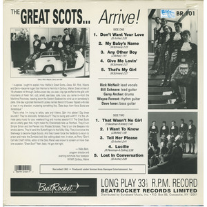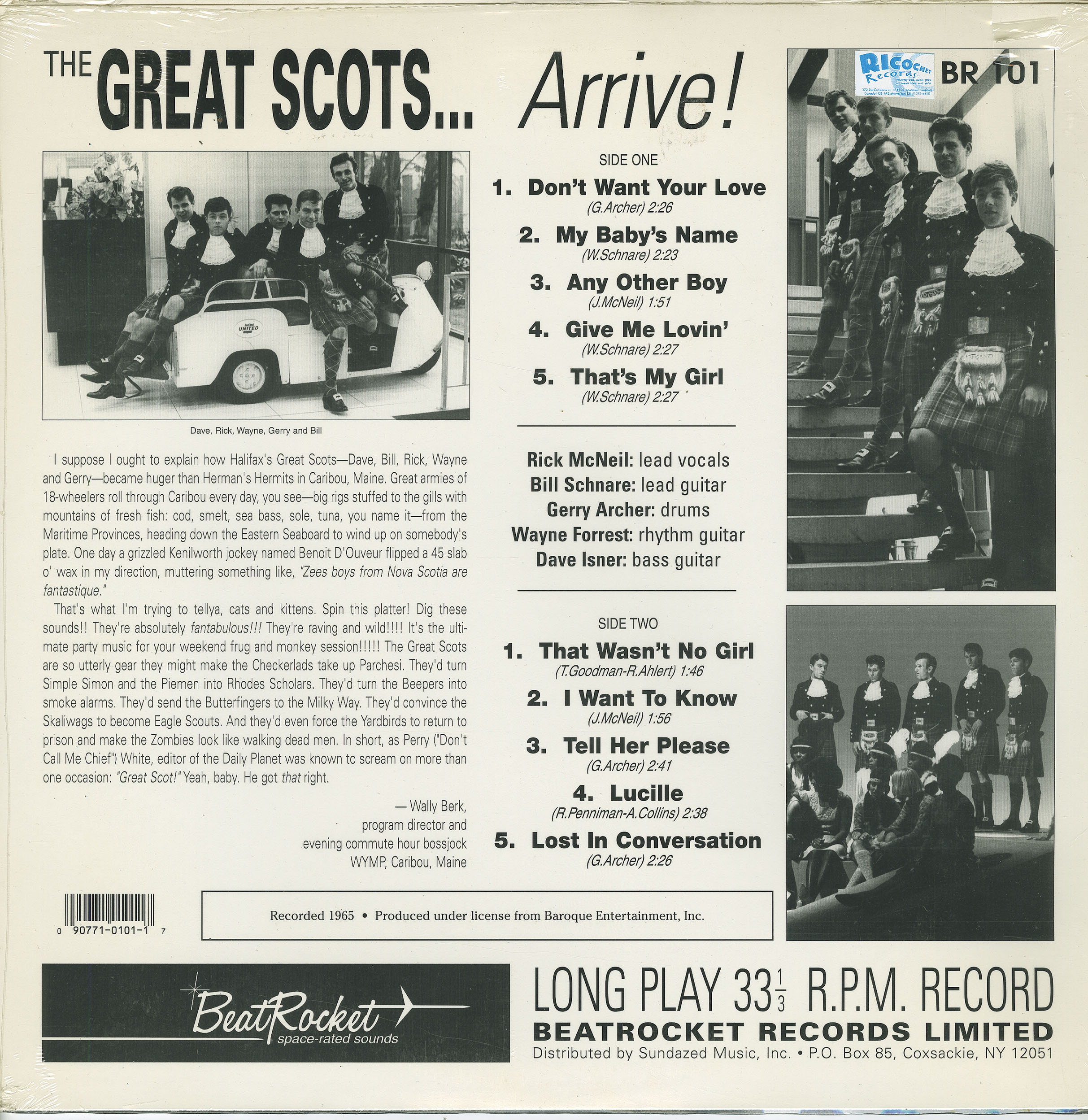 Evolving out of The Beavers, who issued a 45 on London in 1963, this Halifax, Nova Scotia, outfit cut some wild garage punkers. By their final 45 they'd veered off towards David Clayton-Thomas territory - heavy melodramatic macho-man pop. The 'A' sides to their first two 45s were later included on Nightmares From The Underworld, Vol. 1, That's My Girl has also resurfaced on Open Up Yer Door, Vol. 2 and Ball And Chain on The Garage Zone, Vol. 3. Give Me Lovin' was a massive Canadian hit, peaking at No. 11 on 25th October 1965. Both sides of their first two 45s can also be heard on The Great Scots.... Arrive! album, along with a series of previously unreleased recordings from 1965. The 1997 Sundazed album The Great Lost, Great Scots album includes both sides of their last three 45s and eight previously unreleased cuts, including covers of John Sebastian's On The Road Again, an excellent cover of Tucker-Mantz's I Ain't No Miracle Worker, renditions of Seals and Croft's I Can Do It Better, Goffin-King's Honey And Wine, Billy Vera's Lord, I'm So Lonely and the Spector-Pomus number What Am I To Do. The collection is rounded off by two band originals - an instrumental Someone That I Can't See and Don't You Believe Them. There is no duplication of material between this and The Great Scots.... Arrive! album so it's worth getting both! It seems the album they were working on from which much of the material on the Sundazed album was never released at the time because Dave Isner got drafted. Still, although they never made the big time they remain good friends. They all live in fairly close proximity to one another and have a big reunion every Labor day.
