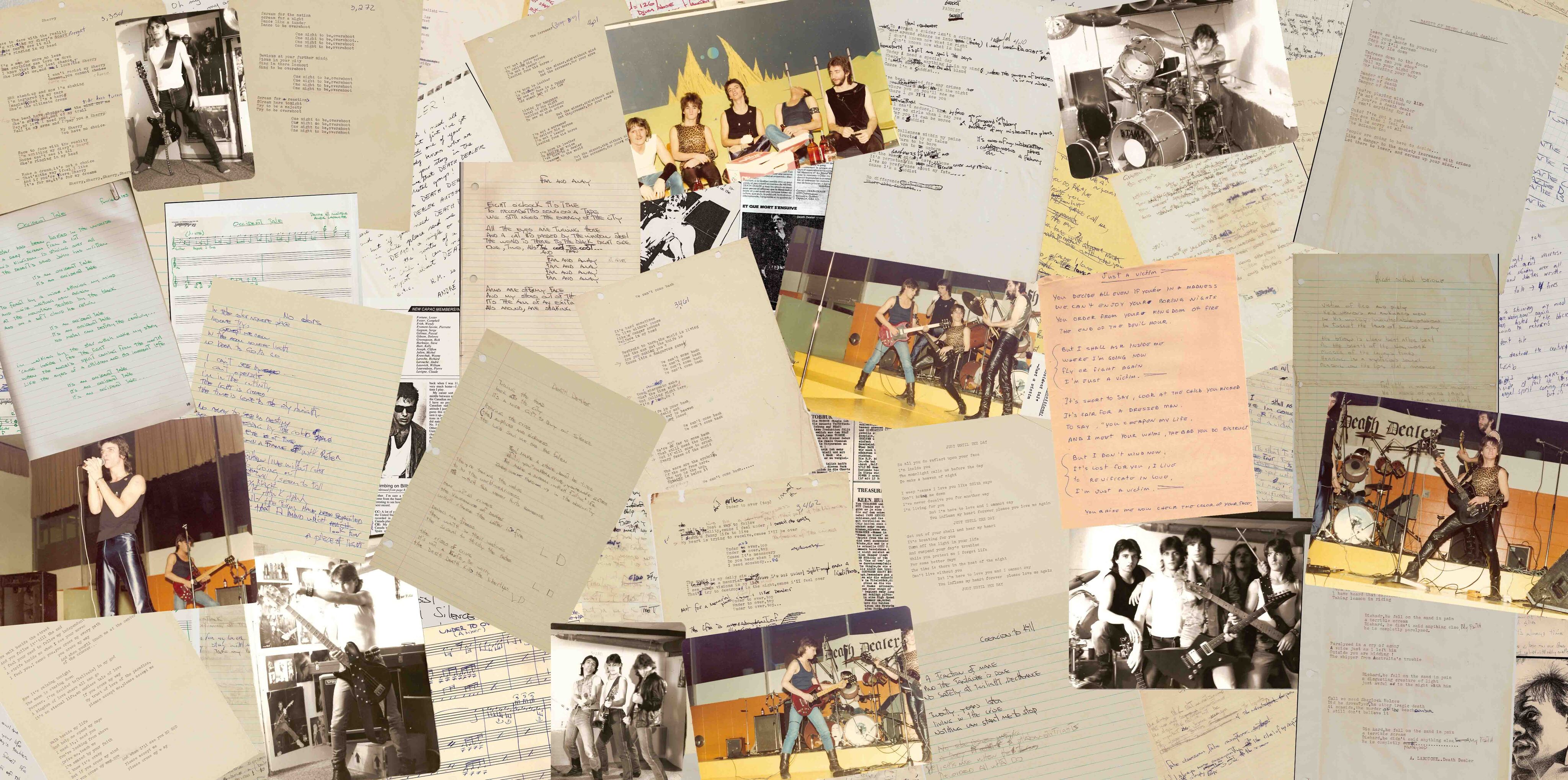 The story started in Jonquière, this local heavy metal environment, which gave us all the passion and success that we could expect. From 1981 until mid 1984, DEATH DEALER was getting some glory via lots of major events and touring with bands like ANVIL and CONEY HATCH along with a lot of airplay on local radio stations, which elevated us as a major popular heavy metal band. Propelled by thousands of fans, our music reached headbangers all over the globe with the help of our friend Wayne Archibald that led us during the summer of ’83 to sign a major contract with the most important heavy metal label of that time, Metal Blade Records and Brian Slagel. Following the appearance on “Metal Massacre 4”, DEATH DEALER with the immortal ‘Cross My Way” became well-known worldwide as the ‘Canadian Maple Tormentors’ in all the heavy metal magazines. DEATH DEALER reached the top of the ’80 independent Heavy Metal Charts in the US and elsewhere alongside with Slayer, Metallica, Mercyful Fate, Venom, Anthrax and all the other major bands of that time.