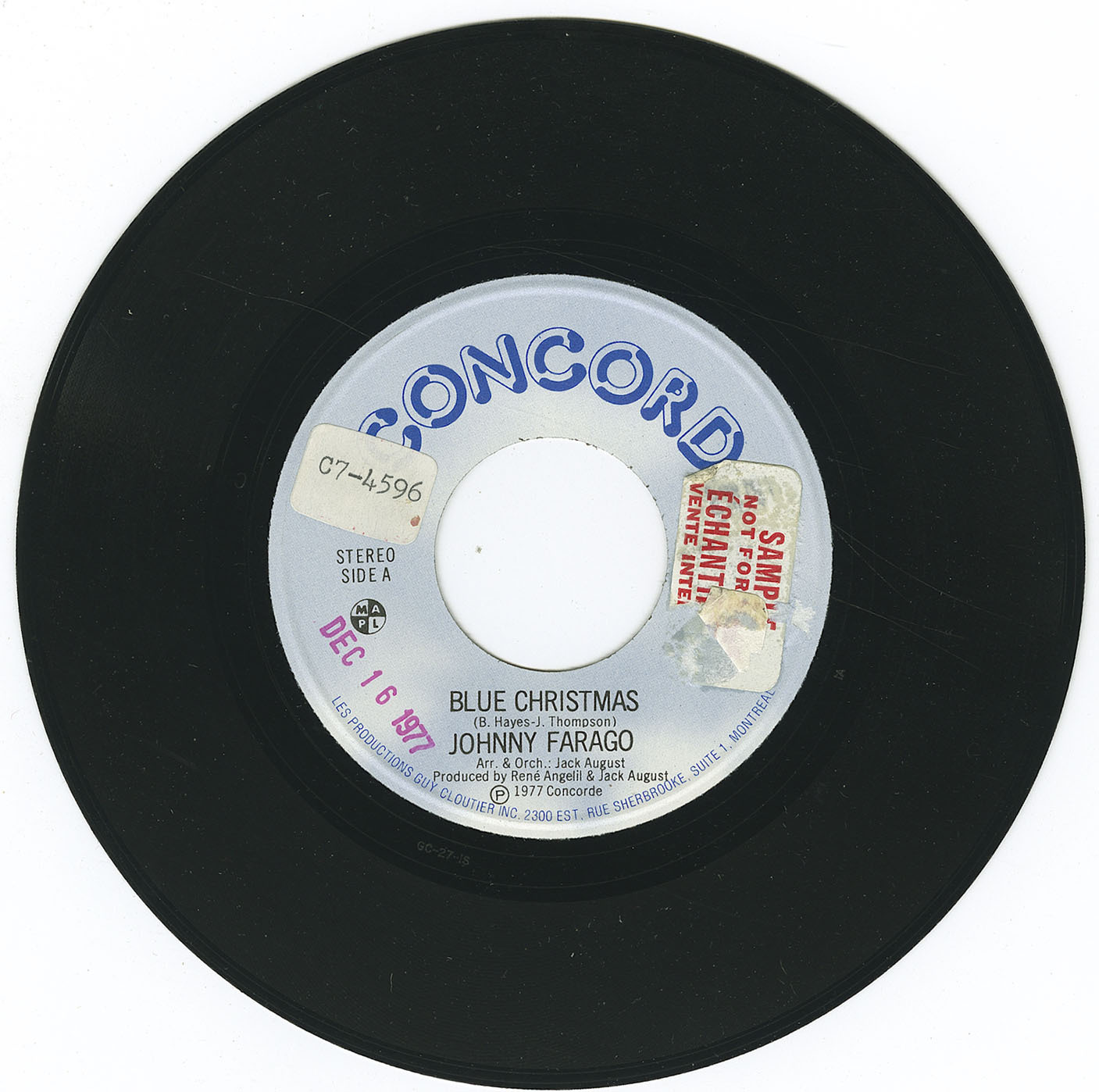 Farago, Johnny - Blue Christmas b/w Blue Christmas (instrumental)