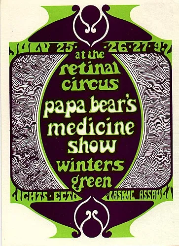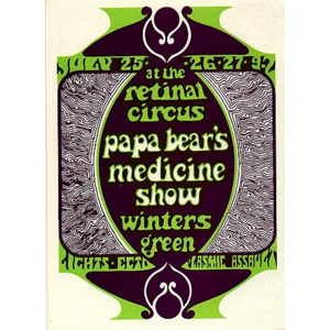From John Murray's master tapes - here are the 24 tracks transferred by John Lyle and presented, with John Murray's agreement, by Robert Williston only here at citizenfreak.com - for the most part these are previously unreleased tracks of live recordings from The Retinal Circus from 1968 (there is some overlap with Medicine Show at the Retinal Circus CD on One Shot 002, released 2003 but these are different mixes). Papa Bears Medicine Show were probably second only to The Collectors for musicianship. John Murray was the instrumental heart of the group. He had a falling out with their manager and when he left they replaced him with Robbie King, who was a heavy keyboard player. The group didn't last much longer after that. John Lyle recalls: "Susan Jacks told me that the members of Nirvana told her that John Murray was the best guitarist they had ever heard. I agree, and I was so fortunate to be able to work with him for so many years. The last thing we did together (“We Must Be Patient” in 2020 when Covid hit) features what I consider some of his finest playing". John Murray resides in a care home in Burnaby, British Columbia.