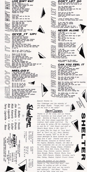 Shelter was a Canadian melodic hard rock and AOR band led by the creative duo of J.T. Batten (Jordan Batten) and Bob Lapointe. Formed in 1989, the band carved out a loyal following within the underground AOR community, evolving through several incarnations and releases that showcased their blend of soaring melodies, heartfelt lyrics, and polished production.